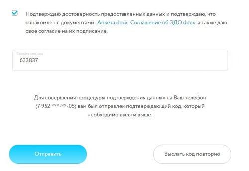 - Дождитесь подтверждения операции. Вам придет СМС-уведомление с кодом для подписания документов.
