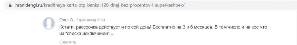 Источник https://hranidengi.ru/kreditnaya-karta-otp-banka-120-dnej-bez-procentov-i-superkeshbek/