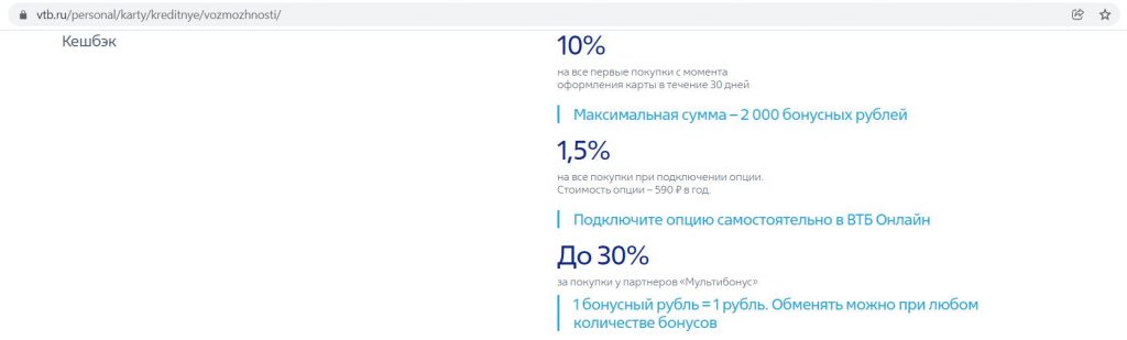 «Карта возможностей» с опцией Cash Back стоит 590 руб./год, за все покупки здесь предусмотрен кэшбэк деньгами в 1,5% без округлений (максимальная сумма покупок, за которую положено вознаграждение, ограничена 75 000 руб./мес.).