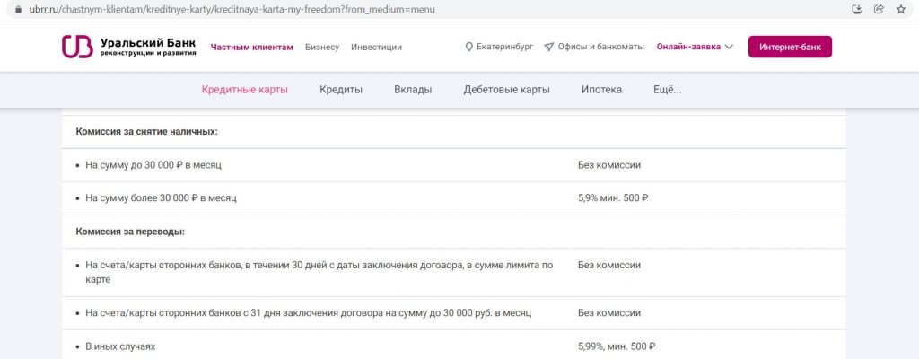 С обновленной кредитной карты My Freedom от «УБРиР» в первые 30 дней можно перевести в другой банк весь кредитный лимит без комиссии и в грейс (межбанком или толканием), потом доступны ежемесячные переводы заемных средств с лимитом в 30 000 руб./мес. также с сохранением льготного периода.